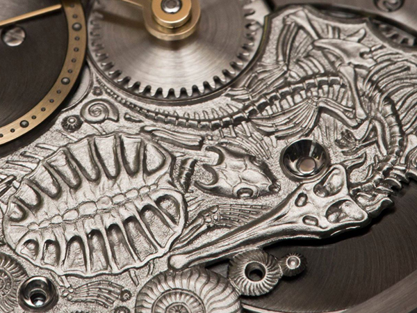 印象中,從小對於遠古世紀的生物總是充滿的幻想,不管是恐龍或是同時期的生物。從教科書上來看,牠們生存的條件是嚴苛的,歷經演變及環境氣候的變遷,許多大形的生物,不管是海底下的還是陸上走的、天上飛的,都幾經演化的成為我們人類進化相關的原素。那些年看過侏羅紀公園電影的朋友們,無不被那幻想的遠古生物們帶入那個世紀,相信你們也與我一樣有這樣的感受才是。最近,來自東歐斯洛伐克的獨立製錶品牌Molnár Fábry Hand Made Unique Watches,他們推出了一枚「Archehorology考古學」為名的客製腕錶,這是由獨立製錶師Michal Molnár及金雕師Igor Fábry倆人攜手完成的作品,顧名思義的就是從我們從小幻想的古世代做為主題的特殊微型雕塑腕錶,這類主題的腕錶可說是相當的罕見,同時也相當有趣。