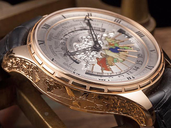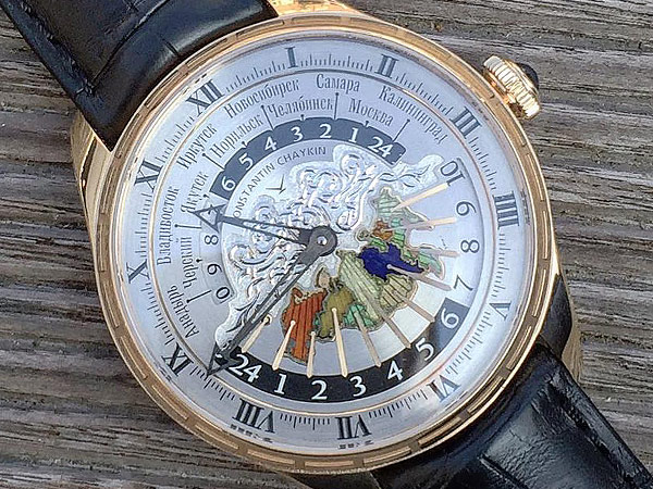 這國家主要的11個城市如:莫斯科,車里雅賓斯克,諾里爾斯克,雅庫茨克,切爾斯基,薩馬拉,加里寧格勒,新西伯利亞,伊爾庫茨克,阿納德爾和符拉迪沃斯托克,都將它們規劃於全新錶款Russian Time(俄羅斯時間)腕錶上,這枚腕錶的起始概念是來自於AHCL獨立製錶師Konstantin Chaykin康斯坦丁.切金,在彼得霍夫宮中的由俄羅斯著名的鐘錶大師Ivan Yurin伊萬‧理奈過去1861年所製造的老式大座鐘上,看到許多個大大小小的鐘都集結在一起,這些都是指示俄羅斯國家境內的每一個大城市的時區,同時間,這個座鐘也看到了過去舊時代的城市,因此,他決定打造一枚可以隨時掌握時區的腕錶,讓使用者可以清楚快速的掌握國內各地的時間,他開玩笑的說道:或許,後代的人們看到這枚腕錶時,是否會同他一樣,再創新的時計呢?
