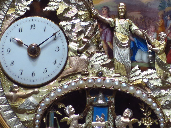 百達翡麗博物館的展區共有四層,訪客從一層進入,再從第四層由上往下依序參觀,第四層是百達翡麗檔案室與圖書館,除書籍之外,也展覽製錶相關的文物;第三層展出16到19世紀製作的鐘錶傑作,涵蓋多個品牌,包括了寶璣具有代表性的懷錶、座鐘、立鐘等等,如果可以的話,寶璣應該很想把自家的傑作買回去吧!另外像是1770年左右Abraham-Louis Perrelet製作的第一款自動上鍊懷錶、帕瑪強尼Ovale Pantographe伸縮指針腕錶的原型古董等等,在這裡都能見到。