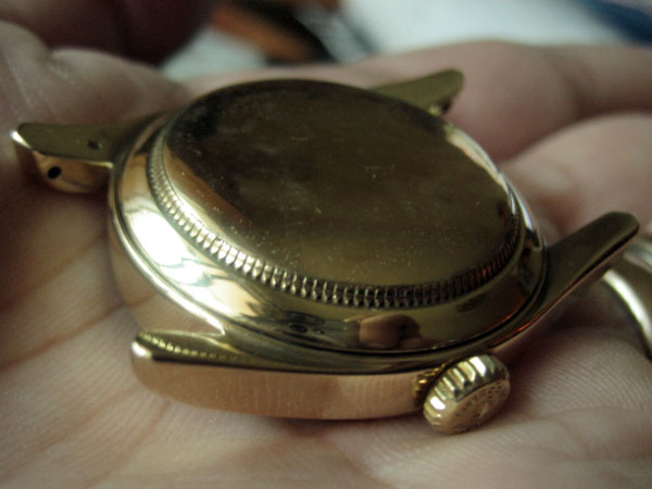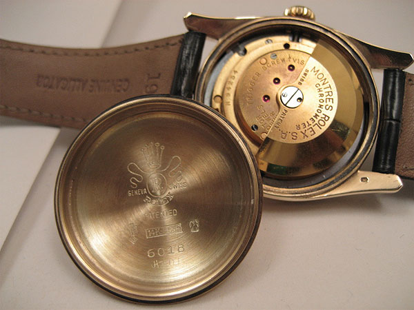這只錶說起來在ROLEX Bubble Back(泡泡背)的世界中它算是後期的產品了,但是它還是有Semi Bubble機芯的特性如:錶底蓋外觀如泡泡一般的圓底。Cal.630特殊鍍金機芯(Gold Plated Movement)的結構上當然就是有Bubble Back專利的上防塵蓋板,一般看到的都是2~4石沒有軸承寶石,但是它卻是7石寶石軸承,防塵蓋板下和一般同期的機芯一樣是17石的天文台級機芯,不過卻為7方位校正天文台認證。