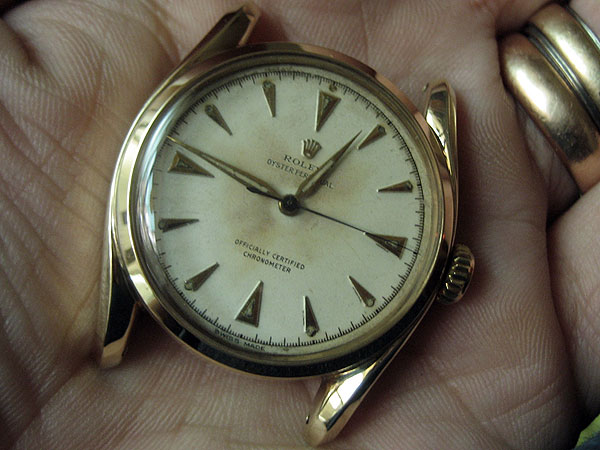 話說,這枚生產於1949年,少見的早期14K金勞力士Ref.6018 Bombay Lug(孟買錶耳)泡泡背,在早年的台灣古董錶風氣未盛行以前,其實,在國外它們早讓許多資深的腕錶收藏家給追逐,其中又以日本及義大利的收藏家們,它們對於此是極為熱中的。