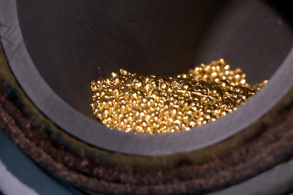 藉由高溫與高壓,讓黃金分子滲透到陶瓷之中,創造高硬度,耐刮不氧化的Magic Gold。看似大工程,但全程可在HUBLOT廠內完成。