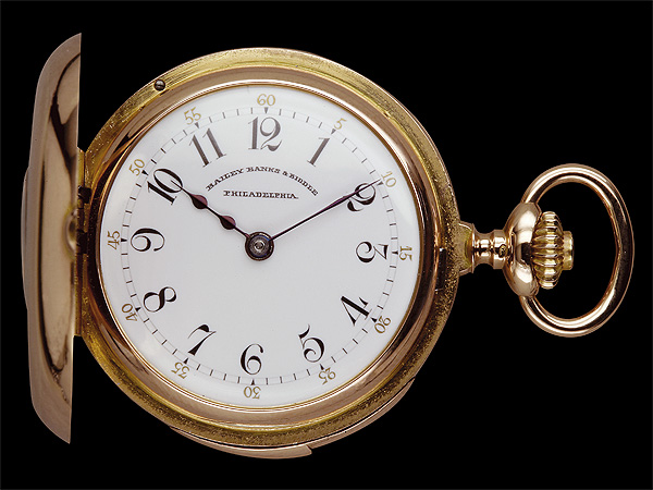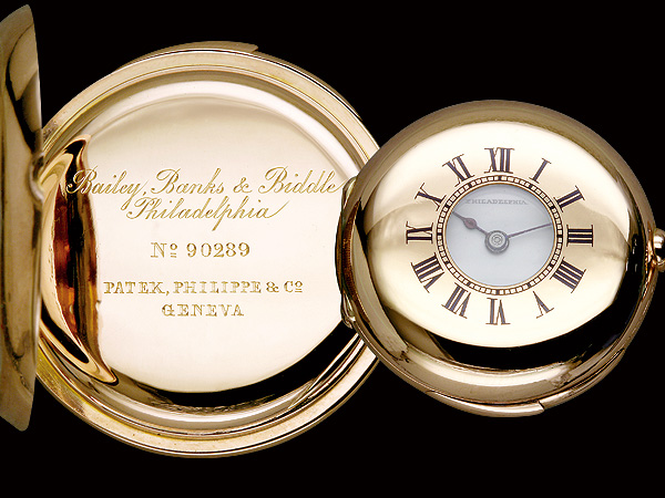 這只18K玫瑰金三層蓋5件式的半獵錶,外殼直徑33.5mm,機芯直徑約26.5mm,厚度約5mm,由當時美國費城的一家知名珠寶商BAILEY BANKS & BIDDLE下單向百達翡麗訂做,百達翡麗接單後於1891年開始製造,直到1893年2月25日交貨。當時這樣的懷錶非常稀少,應該是貴婦下單訂做,或是送給千金小姐的禮物,這種超小型的半獵錶更是罕見。