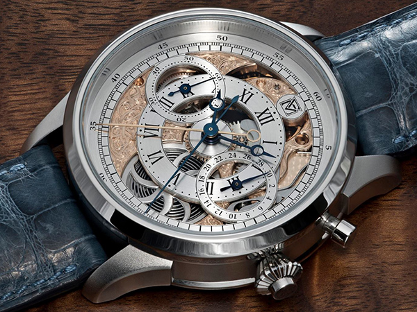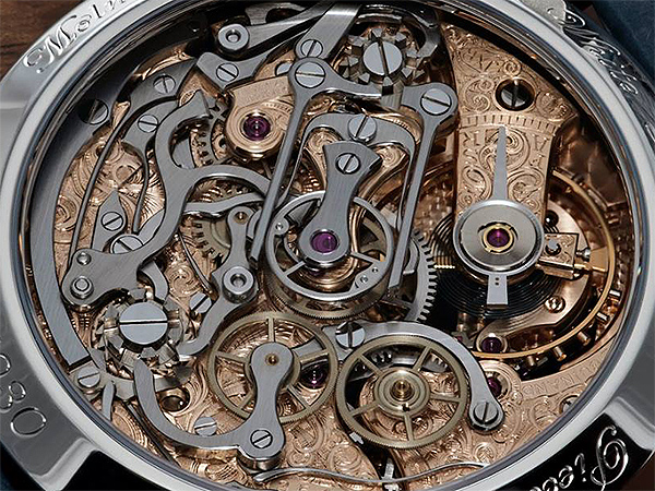 Rattrapante White Lotus 此全新訂作的腕錶,首枚推出客製的不鏽鋼錶殼尺寸為45.8mm ,除了全新的錶殼設計外觀外,當然,製錶師Michal Molnar 更是必須要將機芯上所有的機芯零件全部拆除分解,再行細節部份的手工邊緣修飾及極度的手工拋光。另外,接著手工微型金雕師Igor Fabry,更是適當的將剔空機芯夾板,再行細部的主題式手工微雕,最後再將機芯包覆玫瑰金色澤;一枚高級的製錶,錶盤材質可是必須要講究的,以999純銀(silver 999/1000 )製造的鏤空錶盤,更是將過去早期古典主義的造型字樣美學,發揮到淋漓盡致。