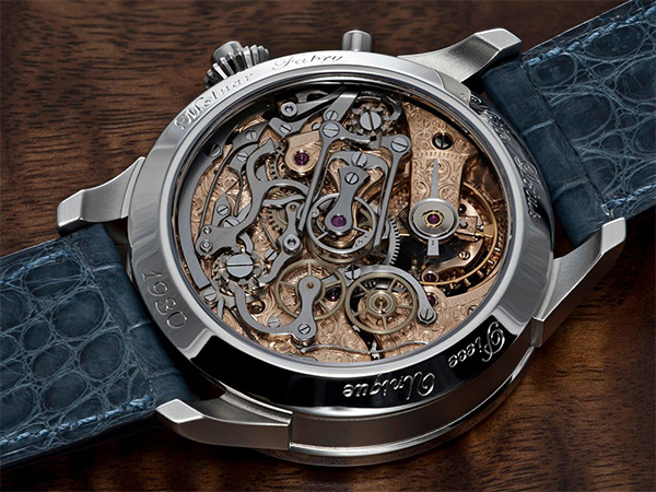 從此處便不難看出製造此錶款的製錶師及金雕師他們的企圖心所在;錶盤上的時分秒指針,則是採取不鏽鋼材質,再以傳統的手工燒藍程序(Blued Steel)來完成,讓腕錶指針經久不褪色,非時下常見的化學電鍍手法,其中,玫瑰金色計時追針大秒針,則是採取18KRG(玫瑰金)實金切削而成,每一個所見細節處,都是針對極端追求完美的收藏家來設計,讓喜歡古董計時腕錶的收藏家們不愛也難!