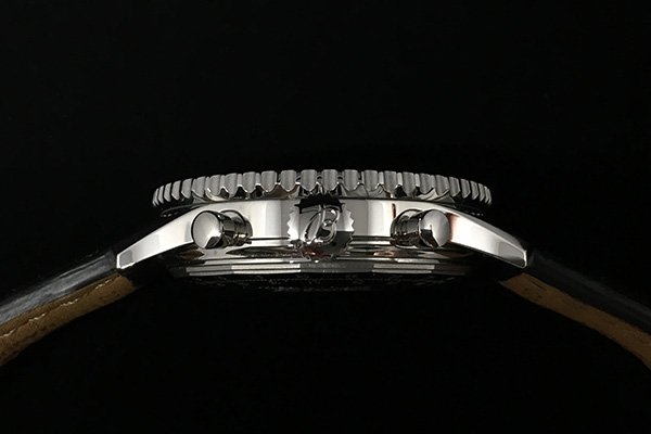 提到計時碼錶算是這款的重點。我有很久沒碰百年靈的自製機芯了,老實說操作起來的感覺已經忘得差不多了,只記得並不是特別驚艷,現在拿自己的來仔細體會,具體來說啟動的手感相當硬,要花不少力氣才按得下去,相形之下停止和歸零就顯得輕鬆得多了。計時秒針在啟動時偶爾還是會有跳針的問題,照理說百年靈用的是垂直離合,一定程度上應該可以避免這種狀況,但事實並非如此,不過老實說我並有很在意;計時分針算是瞬跳的,要到計時秒針快要走回12點鐘的前一秒才會發動瞬跳,個人已經很滿意了。憑良心講這計時碼錶的操作手感跟真正高級的機種相比還是有一段距離的,不過跟同價位的自製機芯相比,像是IWC的89360,我認為它的表現基本上是在同一個水準,而且百年靈的自製機芯在業界備受好評的理由主要是耐操,據說是怎麼玩的都玩不壞,這點跟一般高階計時機芯的訴求又不盡相同,只是現階段我還檢證不到這點就是了。