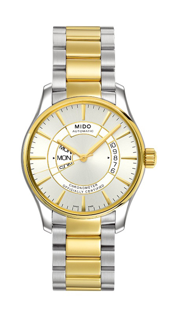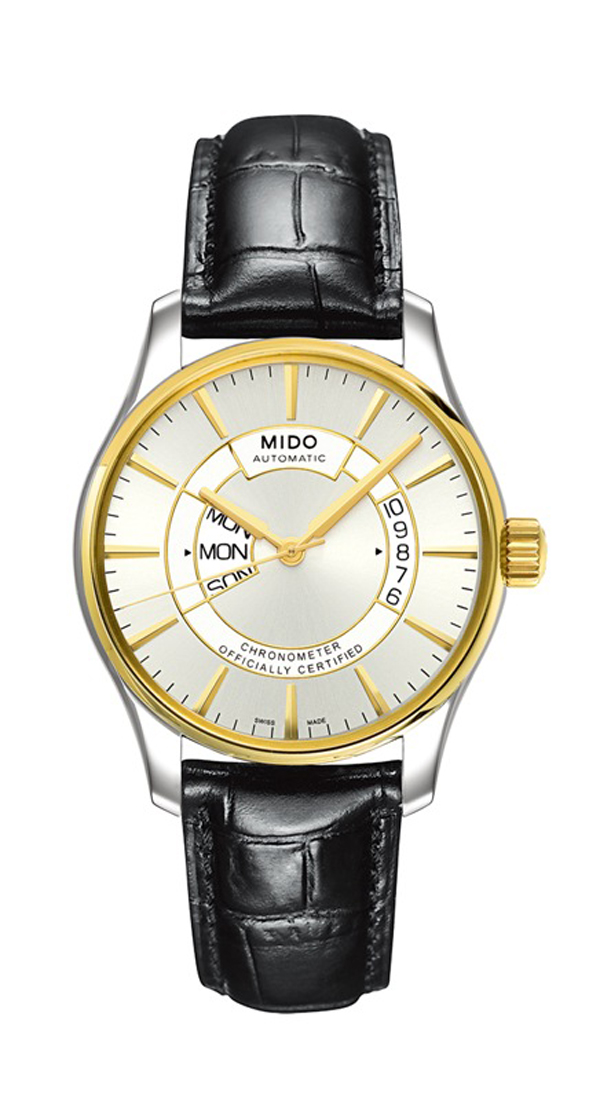 機芯 Cal ETA2836-2自動上鍊機芯,11 ½法分,直徑25.60mm,厚度5.05mm,25石,振頻每小時28,800次,INCABLOC及NIVACOURBE防震裝置,NIVAFLEX NO主發條,ANACHRON游絲,GLUCYDUR擺輪,以及搭配藍鋼螺絲的精緻裝飾機芯,MIDO標誌鐫刻,高準度五方位調校,40小時動力儲存,COSC瑞士天文台認證