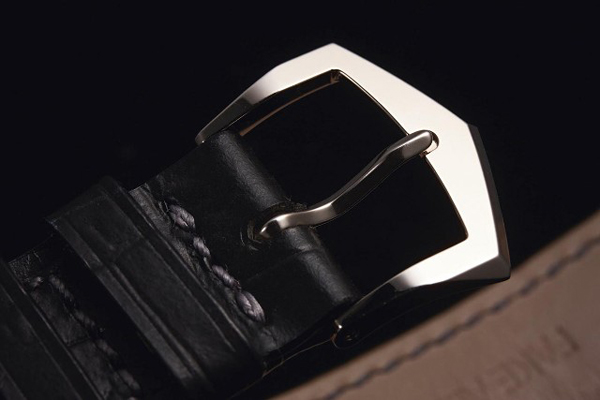 本錶款使用18K白金針扣設計,錶扣上簡潔且低調的設計,讓人無法與百達翡麗的錶壇地位作一連結;但是傳統針扣的設計,卻是最能確保錶款不致掉落的錶扣結構。