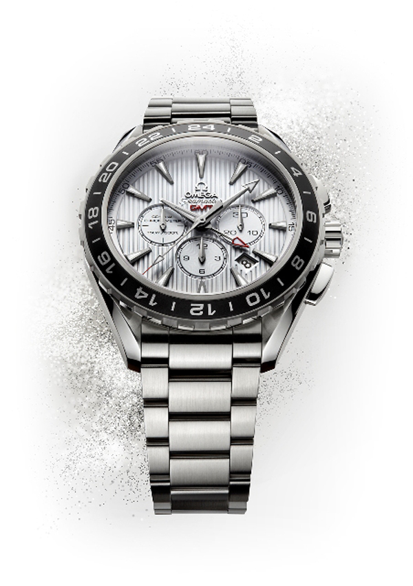 錶殼不鏽鋼材質,搭載獨家3603自動上鏈兩地計時碼錶機芯,三段式同軸擒縱技術,歐米茄無卡度游絲擺輪,中央設置時針、分針及GMT指針,9點鐘位置設置秒針,日期視窗位於4點30分位置;中央計時秒針,3點鐘和6點鐘位置分別設置30分計時器和12小時計時器。動力儲存50小時。共有白色與黑色錶盤兩種款式,亦可選擇不鏽鋼鏈帶或是黑色鱷魚皮錶帶。NT$268,400