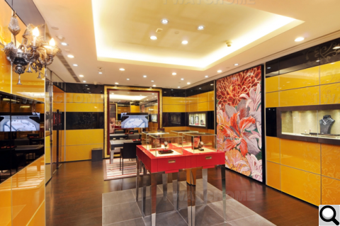 ROGER DUBUIS的香港尖沙嘴半島酒店之專門店佔地800呎,店內設計沿襲ROGER DUBUIS品牌全球統一的獨特裝飾風格:以金色、酒紅和黑色等色調作強烈對比,貴重的木材、雲石、皮革傢俱與簡約輕盈的水晶吊燈相互呼應,從地板到屋頂的巨幅馬賽克拼圖更彰顯ROGER DUBUIS尊貴高雅的氣質,讓所有踏入店內的顧客盡享頂級購物樂趣。