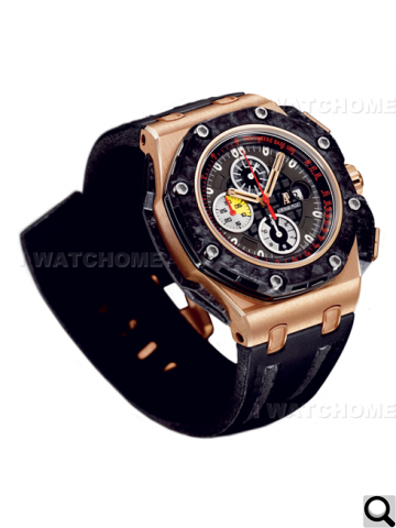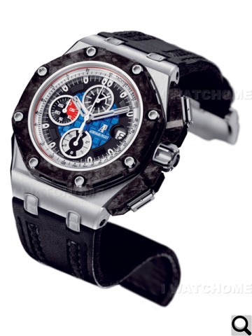 皇家橡樹離岸型國際汽車大賽(Grand Prix)限量計時碼錶的所有設計細節,完全以賽車設計為師,主要靈感來源包括:賽車特殊零組件、賽車冷卻進氣口的凹陷感,以及流線外型與導流板。搭配愛彼錶廠獨家鍛造碳材質以及高科技陶瓷和鈦打造的特殊錶殼,完全彰顯愛彼錶廠的專業製錶技術。