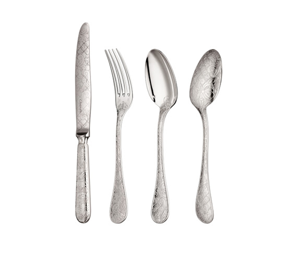 鬱鬱蔥蔥的花園為葉子、花朵及各種交錯的圖案提供了靈感,纖細的條紋勾勒出每個細節的輪廓。每一副餐匙、餐叉及餐刀都完美無瑕。