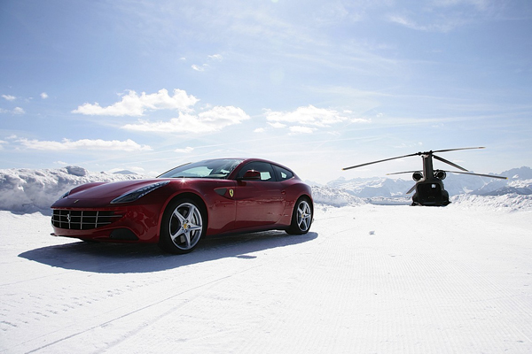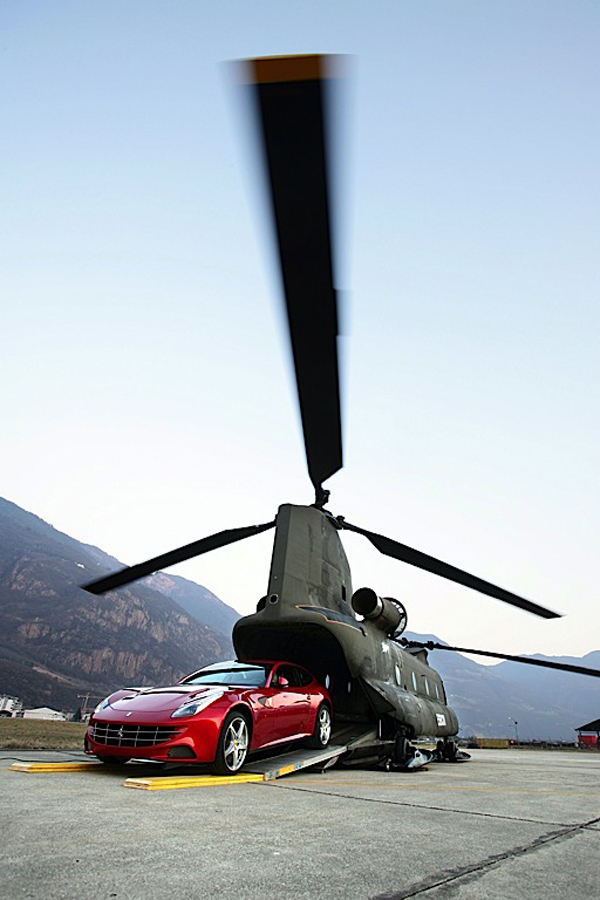 Ferrari FF由駐守義大利Viterbo的空軍安塔爾第1團的CH-47契努克運輸直升機和三架Bolzano安塔爾第4團的奧古斯塔205直升機的協助下,來到這片僅有滑雪纜車才能到達的區域。
