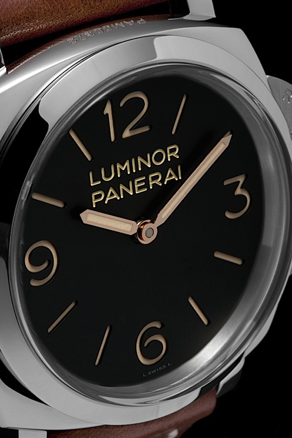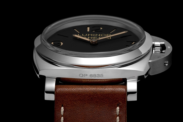 錶鏡採用Plexiglas®樹脂玻璃;錶耳之間鐫刻腕錶型號,雖然這項設計在沛納海近年設計尚屬首見,但此錶殼實際是直接沿用了早期原創錶款的做法;面盤上的 “Luminor Panerai”字樣不再是印製而成,而是採用早期的字體鐫刻在錶盤上。