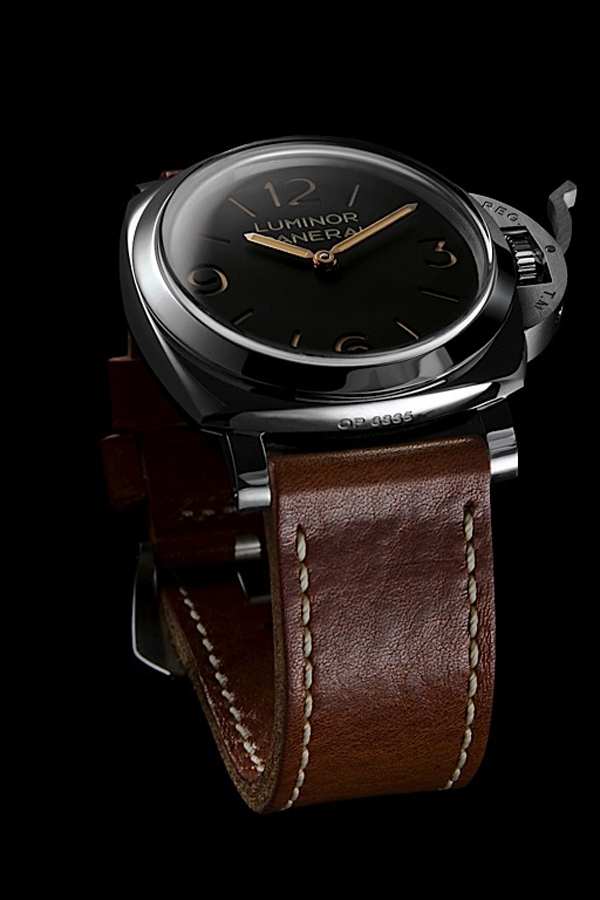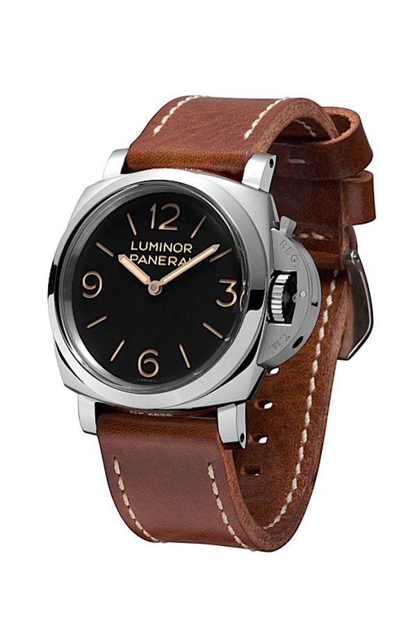 Luminor 1950 3 Days - 47毫米3日動力儲存腕錶型號為PAM00372,全球產量3,000枚。此錶款配搭附有經典磨砂精鋼錶扣的復古處理皮革錶帶與當年的古董錶款相得益彰。