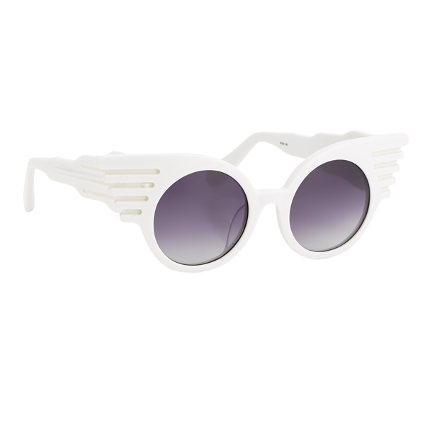 永遠不按牌理出牌的怪咖設計師Jeremy Scott以銳舞為靈感,運用多變化的複合材質及鮮豔對比色,將時裝大秀伸展台變成了爭奇鬥豔的派對現場,同時Jeremy Scott的服裝及配件設計向來以視覺效果搶眼、話題性十足著稱,繼Linda Farrow與Jeremy Scott合力打造的手指鏡框後,再度推出Linda Farrow x Jeremy Scott多款造型眼鏡,包括延伸自與愛迪達聯名翅膀系列的JS Wings、立體十字造型的JS Cross及以金屬鏤空笑臉、如面具般帶點詭魅氣氛的JS Smile。