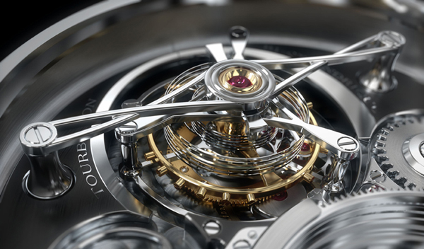 圓筒擺輪游絲礙於體積而難以用於腕錶之上;萬寶龍將之縮小並改為雙游絲系統且融合陀飛輪裝置,精準計時更上層樓。