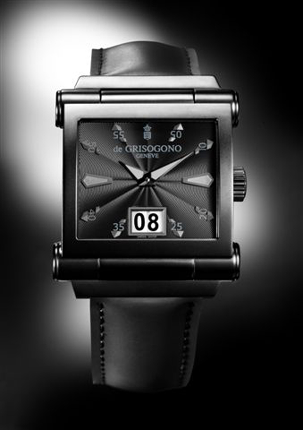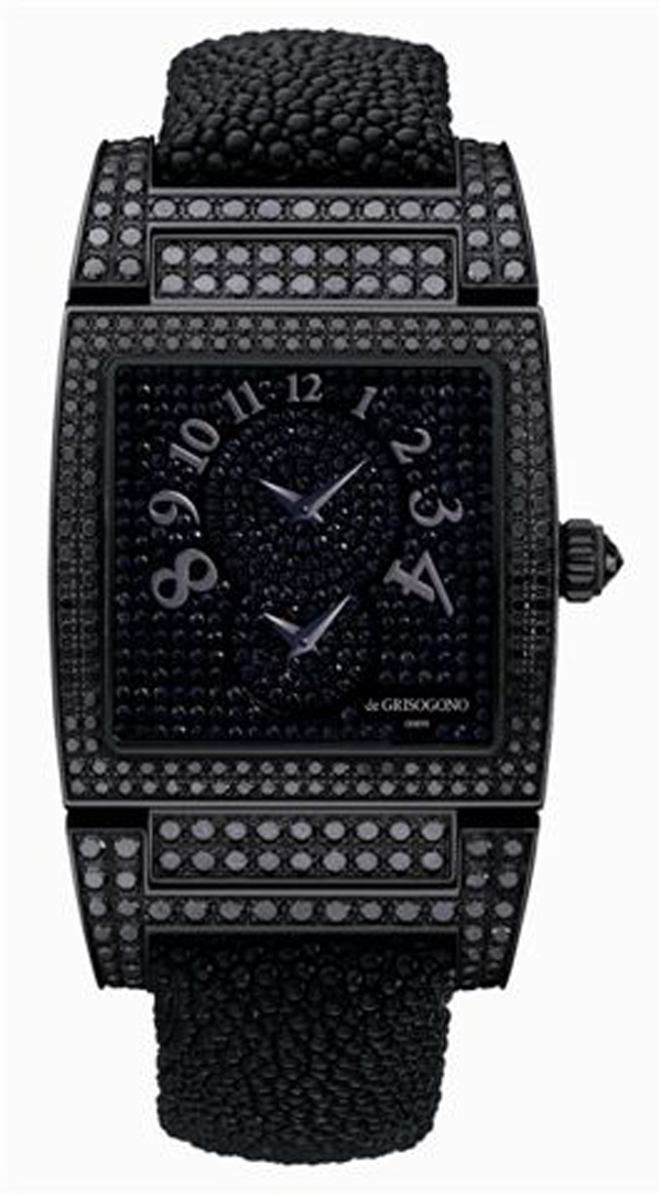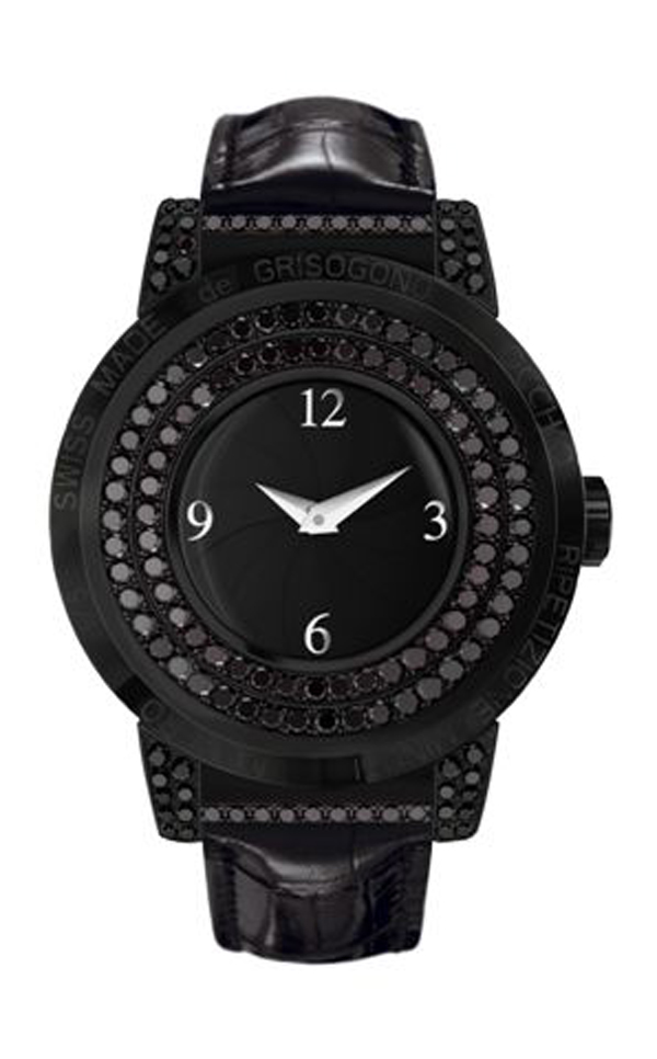 偶然的一次他嚐試把一顆白珍珠放在一堆黑鑽當中,那美感立時令他為之觸動,並幻化成他首個系列的主調:一只以120顆共重17卡的黑鑽戒指,以黑化白金及黃金打造,烘托一顆直徑17毫米的南海白珍珠,黑白對照,線條造型份量十足,閃爍黑鑽更突顯出珍珠的亮麗美感,令人無比震撼;自始黑鑽便成為 de GRISOGONO 的象徵符號,由2000年發佈的第一只鑲有黑鑽錶冠的腕錶至今,黑鑽錶冠都有點綴於大部份腕錶系列上,更成為了品牌的標記。
