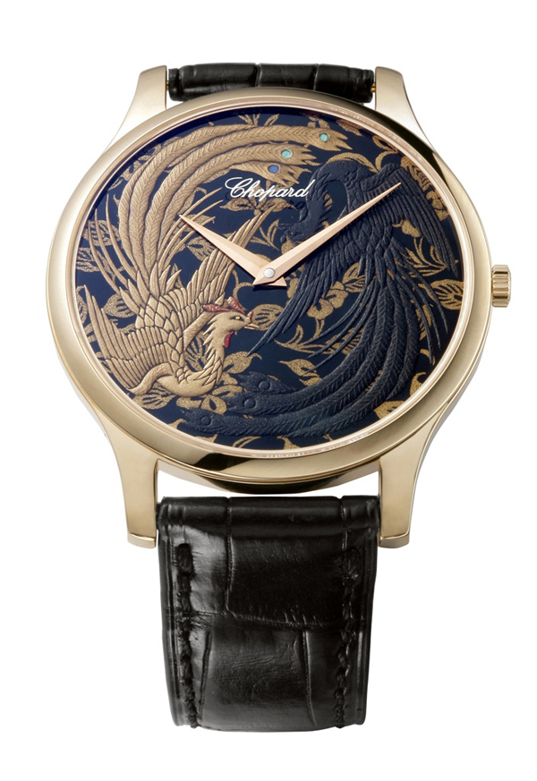 蕭邦L.U.C XP 蒔繪腕錶-鳳凰,兩隻鳳凰的飛舞姿態栩栩如生,參考售價NT$ 672,000