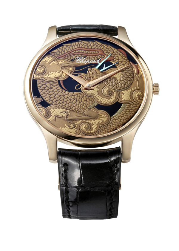 蕭邦L.U.C XP 蒔繪腕錶-藍角龍,其創意靈感來自五行中的金,對應的靈獸即為藍角龍,參考售價NT$ 672,000