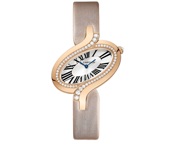 Délices de Cartier腕表魅力洋溢,一如甜美糖果,令人垂涎欲滴。外形玲瓏有致,晶瑩剔透,錶殼婉轉圓潤,美鑽繾綣追逐,勾勒出婀娜多姿的橢圓形狀,錶盤熠熠生輝,自由靈動的線條柔美俏皮,呈上莞爾笑顏。完美橢圓的金質誘惑,璀璨美鑽的甜美點綴,時間的魅力在芬芳蔓延。