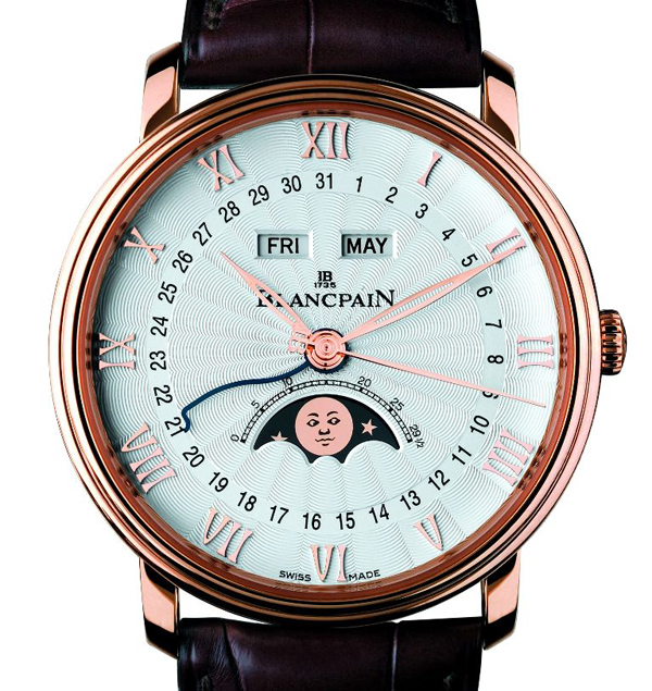 VILLERET半獵全日曆月相腕錶,乃是具備安全換日機制的全新全日曆月相錶,採用隱藏式調校,並搭配半獵錶式的玫瑰金錶殼。全新的寶鉑Villeret系列,將寶鉑從1980年代早期所奠定的美學和複雜功能之核心價值,再次淬鍊昇華。以過去幾年寶鉑在機芯研發上的大量投資,及其所成就的技術進步為後盾,讓一直標榜的低調和優雅的寶鉑Villeret錶款,進入了一個嶄新的境界。全日曆月相一直都是最能代表寶鉑Villeret系列的複雜功能。這枚寶鉑獨家自製的自動機芯,具備了每小時震動28,800次的防磁擺輪,及能提供72小時動力儲存的雙發條盒。