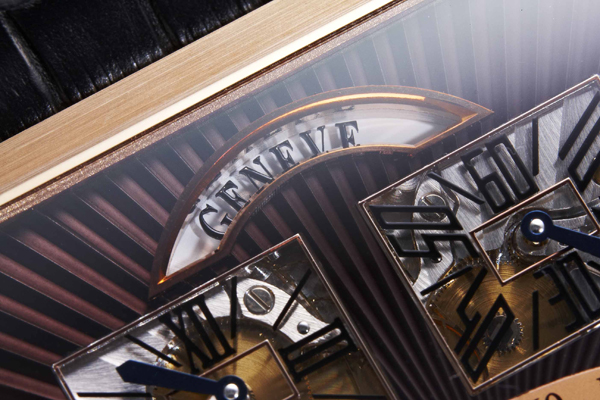 圖說:十二點鐘方向的Geneve字樣會與秒針同步切換方向,秒針在前30秒時,字在右邊;反之亦然。