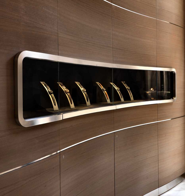 為紀念沛納海和義大利海軍之間的歷史淵源,店鋪採用了大量令人聯想到海洋的裝飾和物料:簡約的線條,相間於波浪形結構之間,一切的裝飾,均以玻璃、白色大理石、精鋼和特有的柚木製造,營造更多「航海」氣氛。專門店牆上有個大型壁鐘,具有沛納海腕錶其中一個明顯特徵:錶盤採用「三明治」結構設計,重疊的兩個片層,中間夾著一層強力夜光 Super-LumiNova®塗層,此物料用於製作刻度和數字時標,使腕錶即使在水深極為幽暗的環境之下,仍然可以完美清晰地顯示時間。