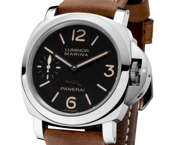 圖文:Luminor Marina – 44毫米腕錶,限量生產100枚。腕錶錶殼以拋光精鋼製成,錶冠護橋裝置的材質是磨砂精鋼。