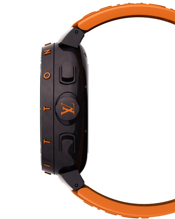 圖文:Tambour Diving II潛水計時錶,大型夜光刻度單向旋轉錶圈功能,可提升顯示清晰程度,而橙色也為路易威登義助Only Watch 2011拍賣會的象徵顏色。