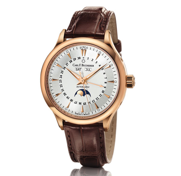 型號:00.10909.03.13.01/CFB 1966自動上鏈機芯、直徑26.2毫米、厚度5.2毫米、21石、動力儲存42小時/日期顯示、星期顯示、月份顯示、月相顯示/錶殼18K玫瑰金 、抗折射凸面藍寶石水晶鏡面、藍寶石水晶錶背、防水深度30米、直徑38毫米、厚度10.85毫米/路易斯安那鱷魚皮錶帶,配18K玫瑰金針式帶扣/定價:345,000元