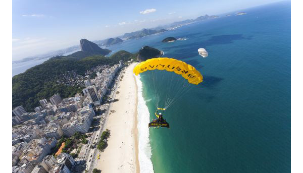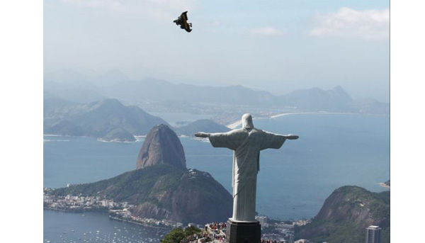 Yves Rossy〈伊夫‧羅希〉是世界上唯一一位利用噴射式飛行翼在空中飛行的冒險家,四月,他靠著一具由carbon-kevlar合成纖維特製而成,配備4個噴氣引擎的噴射式飛行翼,從盤旋在巴西Rodrigo de Freitas Lake〈羅德里科‧弗雷塔斯湖〉上空的直升機裡一躍而下。朝北環繞Corcovado Hill〈科科瓦多山〉的耶穌基督像飛行(這是巴西很著名的地標,想當年李奧納多狄卡皮歐主演的羅密歐與茱麗葉就以此為場景喔!)。之後,羅希沿著里約熱內盧南部,飛越了Ipanema Beach〈伊帕內瑪海灘〉、Copacabana Beach〈科帕卡巴納海灘〉以及著名的Sugar Loaf Mountain〈甜麵包山〉,最後打開降落傘,在Copacabana Palace Hotel前從容地成功降落。