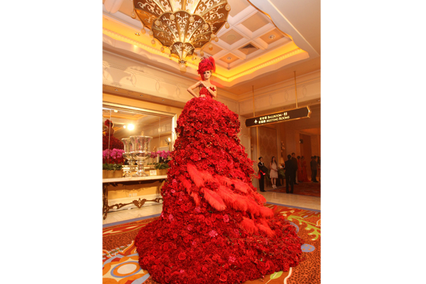 嘉賓甫抵達晚宴現場,即由一位高達11呎的花仙子歡迎。晚宴現場佈置奢華,耀眼萬分,以極具詩意的Infinity Phoenix系列作設計概念,以古代傳說被譽為「百鳥之王」的「鳳凰」作主角,並配合鳳凰之火紅色調,晚宴場地更高掛振翅高飛的鳳凰,寓意FRANCK MULLER未來展翅飛揚。此外,酒會與晚宴場地四周亦投射著品牌標誌之耀眼時標數字,營造出FRANCK MULLER神秘的時空世界。多位模特兒於晚宴上展示多款珍貴腕錶系列,一座座的錶塔娓娓道出一個個絕世天才的技藝與天馬行空的創意,每一枚作品背後的故事都精彩絕倫,迷人奪目。