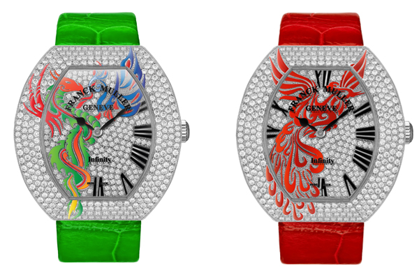 Infinity Phoenix為FRANCK MULLER以極具詩意的方式,傳達出有別於西洋文化所詮釋的東方時間意念。獨特酒桶型設計的Infinity Cintrée Curvex,襯托出錶盤上巧妙地描繪象徵著宏偉尊貴的瑞鳥 ─「鳳凰」。