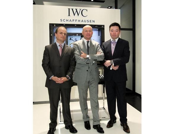 IWC萬國錶亞洲區董事總經理Mr.Benoit de Clerck,IWC萬國錶全球行政總裁Mr.Georges Kern為了這次重新開幕,特地來台出席活動,可見重要性。他們與台灣區總經理李承坦在專賣店前留下身影,預祝這次的飛行表展示順利。