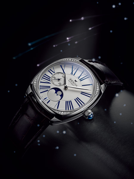 Zenith Star Open鏤空腕錶和Zenith Star Moonphase月相顯示腕錶均帶有兩個特徵:大膽而溫婉的枕形錶殼和擁有超卓可靠性的機械結構 ;無可匹敵的技術性能與最為細膩的高雅氣質完美融合,相得益彰。