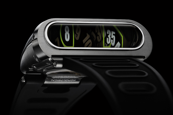 面向前方的垂直顯示讓HM5成為一枚卓越的駕駛員腕錶,因為你不需要將手移開方向盤就能閱讀時間。