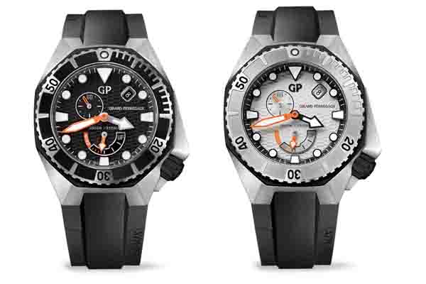 表圈、八角形表環及表冠的磨砂不鏽鋼及橡膠細節質感對比強烈;以GP芝柏表經典夾板造形為靈感的紋理修飾令黑色表盤顯得層次分明;夜光時標及指針,動力儲存顯示及小秒針以亮眼橘色點綴,並加長1點半位置的日期顯示,表盤佈局平衡有致;腕表搭載GP芝柏表自製GP3300自動上鍊機芯,超卓性能不言而喻。