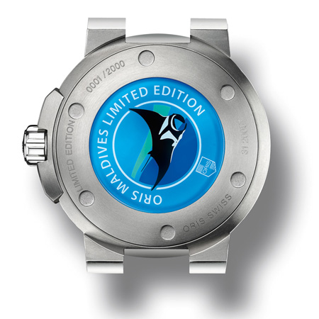 在馬爾地夫旅遊,對於潛水愛好者來說,如果遇到魔鬼魚是一件幸運的事。這種寬寬扁扁的魟魚,隨著島嶼的沉陷也許將會不復存在。為向此珍貴的保護品種致敬,Oris馬爾地夫限量表款以鈦合金錶殼精緻呈現,表背特別鐫刻獨特的魟魚圖像。令這一珍惜魚種長久為人們銘記。