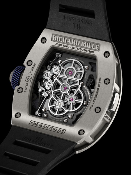 RM 036將於12月7日在伊斯坦堡的FIA頒獎典禮上隆重現身。這枚腕表的部分盈餘由Jean Todt捐給世界公路安全性群組織和其本身為創始人的大腦和脊髓研究院(ICM)。RM 036 Jean Todt陀飛輪重力測量腕表由鈦金屬打造,限量15枚。