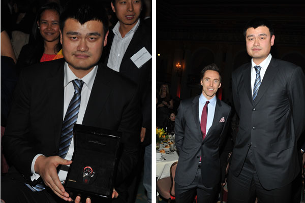 GP芝柏表與亞洲協會南加利福尼亞分會(ASSC)日前攜手在洛杉磯千禧大酒店舉行的2013年年會現場,共同向傳奇籃球運動員姚明(Yao Ming)致敬,並特別贈送『Yao Ming Chrono Hawk海鷹系列特別限量腕表』