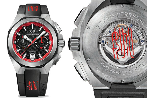 腕表搭載表廠自製自動上鏈計時機芯,配備44毫米精鋼錶殼。此獨一無二的表款將姚明的獨特徽標以鮮明的紅色分別壓印在橡膠錶帶及藍寶石水晶玻璃表背上。GP芝柏表僅限量生產兩只腕表:一只贈予姚明,另一只則在晚宴上進行慈善拍賣。