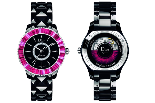 為慶祝此次特別的合作計畫,Dior 將品牌元素與英國經典造型與色彩結合。 因此便以英國經典的紅色作為主軸,運用稀有珍貴的梯形切割紅寶石與粉紅剛玉滿嵌整個錶圈,製造出羽衣霓裳千層重疊的豐富層次感,搭配Dior VIII 黑色高精密陶瓷,整體顯現出高貴雍容的皇家不凡氣勢。