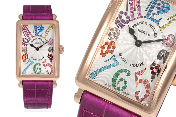 FRANCK MULLER® Long Island腕錶系列的精煉幾何線條與 Color Dreams 系列奔放的彩色數字,贏得眾多愛錶人士青睞。全新的 Magic Color 系列結合兩者優點、將Long Island系列的簡潔風格與 Color Dreams 系列動感彩色數字合而為一。長方型錶殼和色彩盎然的錶盤設計,多彩寶石於面盤上華麗含蓄綻放,優雅韻致如同夜空中綻放的煙火般令人傾心,洋溢無盡青春卻依舊華貴雍容,盡顯色彩魔法之妙。