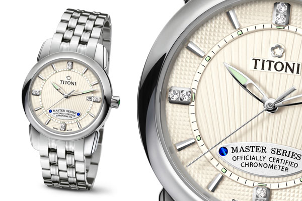 本款大師系列真鑽腕錶,在錶盤6時(男士款式)或9時(女士款式)位置鑲有系列名稱和COSC的認證標示,3時位置為日曆顯示,配合半鏤空夜光時針及分針,日夜都能輕鬆讀取時間,寄寓著對方無時無刻相伴的意涵,也象徵著愛侶間雋永的情意與依戀。此系列的另一獨特之處是透明藍寶石水晶玻璃後底蓋,飽覽機芯作工之美,細緻的內部結構及走時狀態清晰呈現,在機械時計的分秒天地,專屬兩人的愛情合奏曲甜蜜和鳴,瑞士梅花錶精選大師系列真鑽腕錶與佳偶共度未來幸福美好的每分每秒。