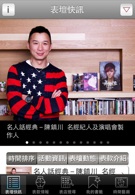 1. 活動情報:最新的熱門鐘錶相關活動情報,除了活動地點地圖導覽功能與連絡電話撥出功能,還可以把活動加入iPhone的行事曆中。