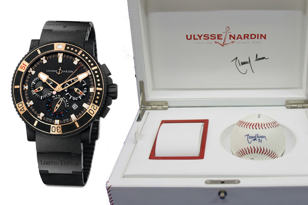 此款限量潛水計時腕錶,從腕錶設計到外盒包裝都充滿濃濃「棒球」元素,藉以彰顯蘭迪‧強森這位著名棒球投手。在錶圈上原先標示50的地方特別被設為蘭迪‧強森的背號「51」;秒針尾端被設計成象徵名投身份的「棒球」圖樣;6點鐘位置的小錶盤外圍也有「Big Unit」和「Limited Edition(限量版)」字樣。此外,本錶款不但配有一顆蘭迪‧強森的簽名球,還隨錶附上有親筆簽名的精美棒球風格收藏盒。