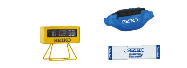 同時為了跑者的計時需求,即日起至七月底凡於SEIKO全台旗艦店及形象店任購一只專業路跑錶款,即可免費參加「第三屆SEIKO SUPER RUNNER 城市路跑賽」,並可選擇以NT$799的優惠價購買「SEIKO路跑小計時鐘」(市價NT$1,200、每人限購乙款),SEIKO將會提供貼心背刻服務(限12.5公里),於路跑活動結束後,為參賽跑者於「路跑小計時鐘」上留下完賽時間紀錄,留下獨一無二的最佳紀念品!