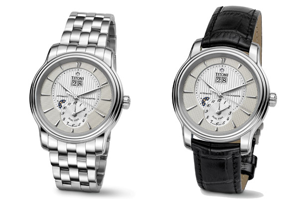 瑞士梅花錶大師系列天文台腕錶錶盤蘊藏諸多細節,錶盤左下方的扇形晝夜窗流轉著明日、皓月、繁星等天相眾泰,晝夜變換與無窮宇宙盡收方寸腕間。舉手投足都是自然大器。錶盤中央的典雅日內瓦條紋與外圈的精緻菱格互相呼應錶盤間的細膩層次;經典大三針、大日曆窗等經典設計,讓此錶款除了可顯示的浪漫晝夜窗外,更添實用功能!第二時區顯示窗可設定心中最重要的人所在異地時區,分秒不忘家/佳人,時時刻刻都牽掛,兩地零時差維繫真感情。配戴者可透過透明的玻璃底蓋,一覽瑞士官方天文台精密計實測試組織(COSC)所認證機芯的優美律動,瑞士梅花錶大師系列天文台腕錶是情深義重的品味雅仕絕美單品。此錶款推出不鏽鋼與真皮錶帶二種款式,不論是陽剛堅毅的True man Style或是溫文儒雅的Gentleman Style,都是個人獨有的時尚「錶」情。