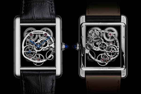 Tank Louis Cartier藍寶石水晶鏤空腕錶開創了鐘錶設計全新視野,鏤空機芯極具創意,機芯主夾板部分地使用藍寶石水晶製作,清澈透明。該清透材質常用於製作腕錶錶殼鏡面,可見卡地亞的匠心獨具,一改常規用途,同時這個設計也已註冊專利。